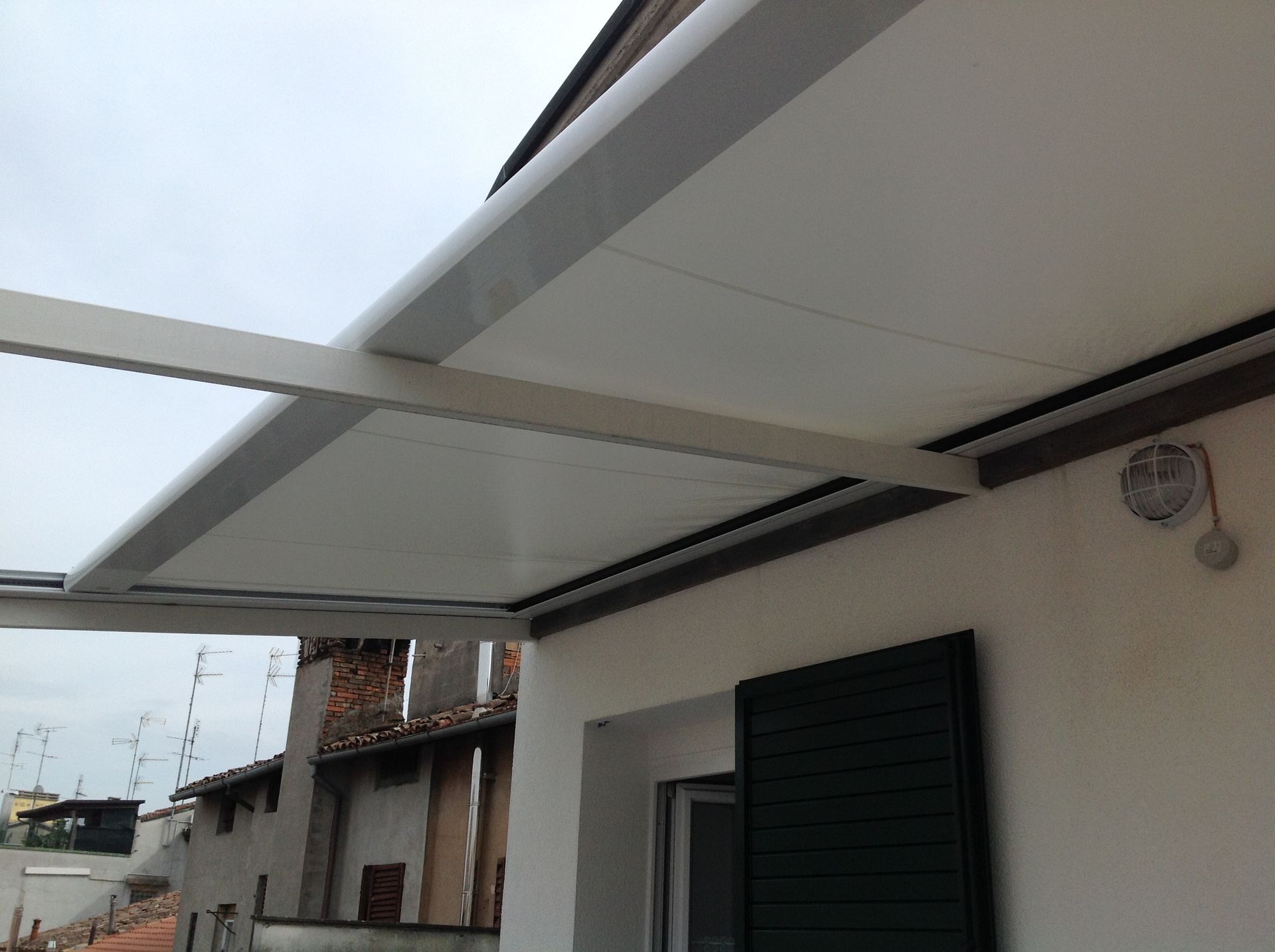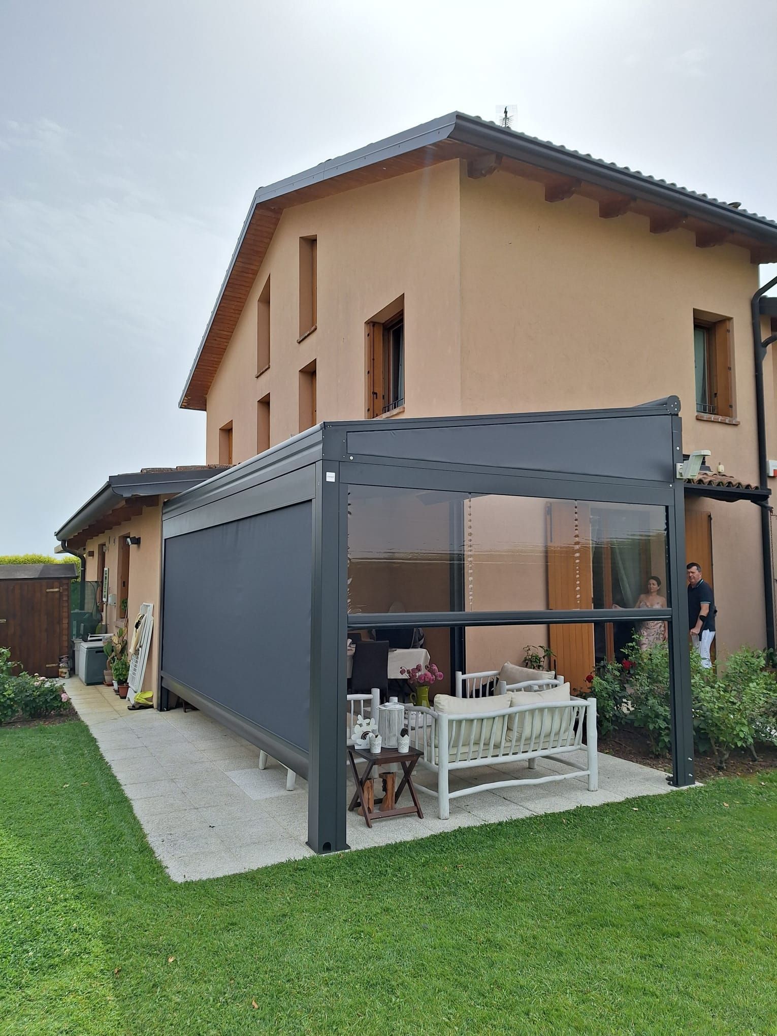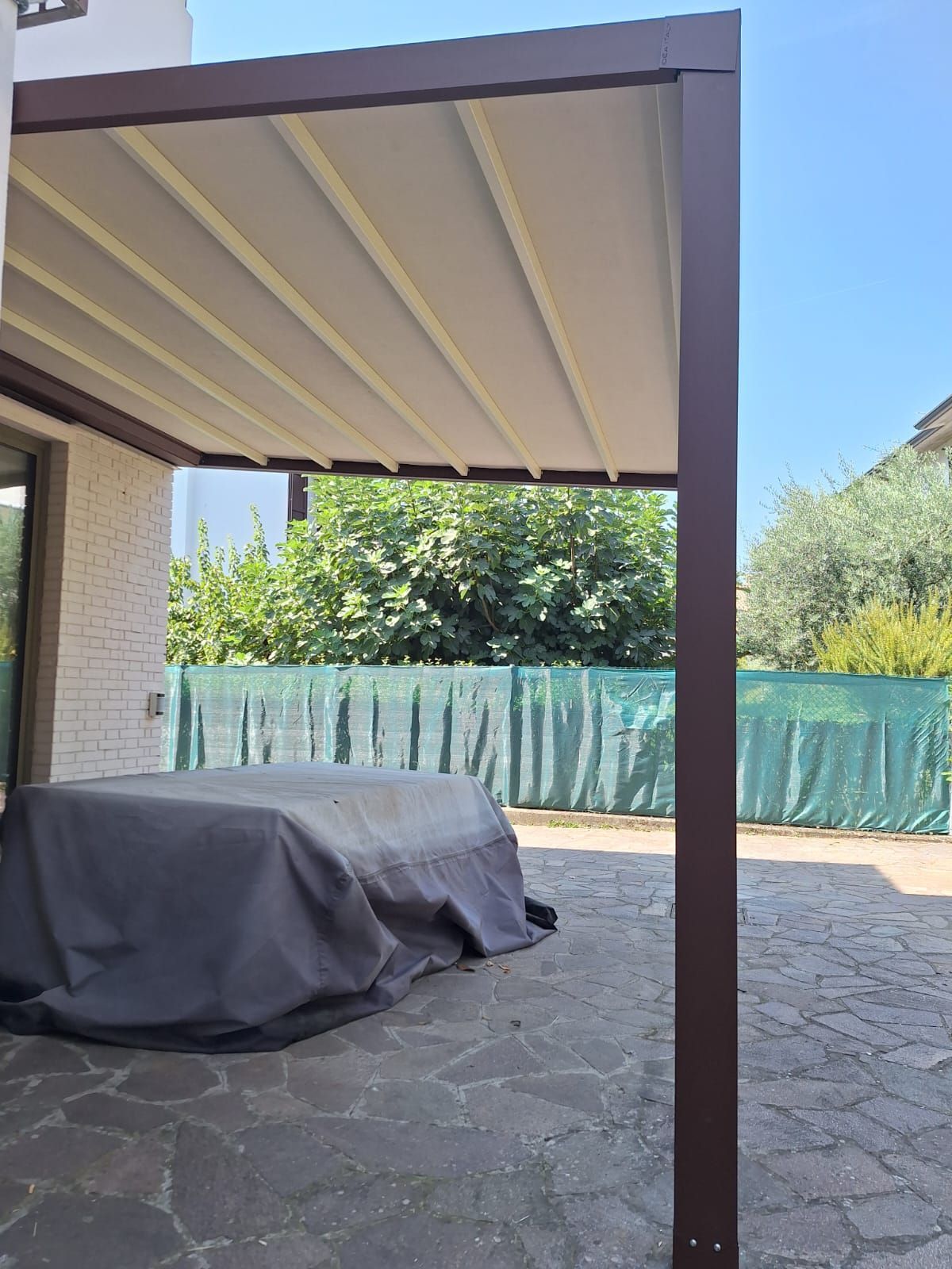 Le pergole col tetto impacchettabile hanno un tetto scorrevole realizzato con un pvc tecnico oscurante che permette di godersi gli spazi esterni tutto l’anno. Possono avere una pendenza inclinata o uno sviluppo orizzontale. Tutte le componenti sono in alluminio e acciaio inox, combinano estetica e funzionalità.