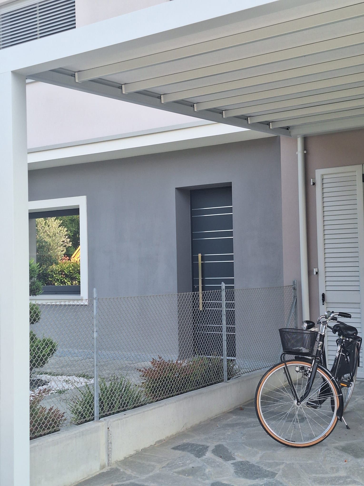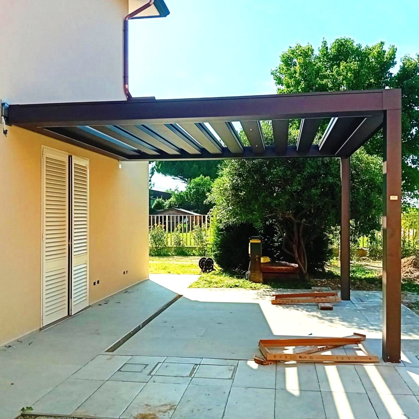 Le pergole bioclimatiche, sono realizzate interamente in alluminio e acciaio, si distinguono per il loro tetto composto da lame orientabili fino a 140° o compattabili, in questo modo è possibile modulare la luce e l’aria, regolando il microclima. Sono elementi di design che si integrano perfettamente nel contesto architettonico.